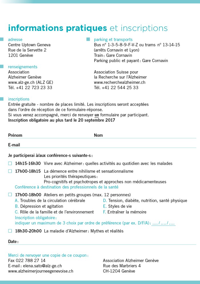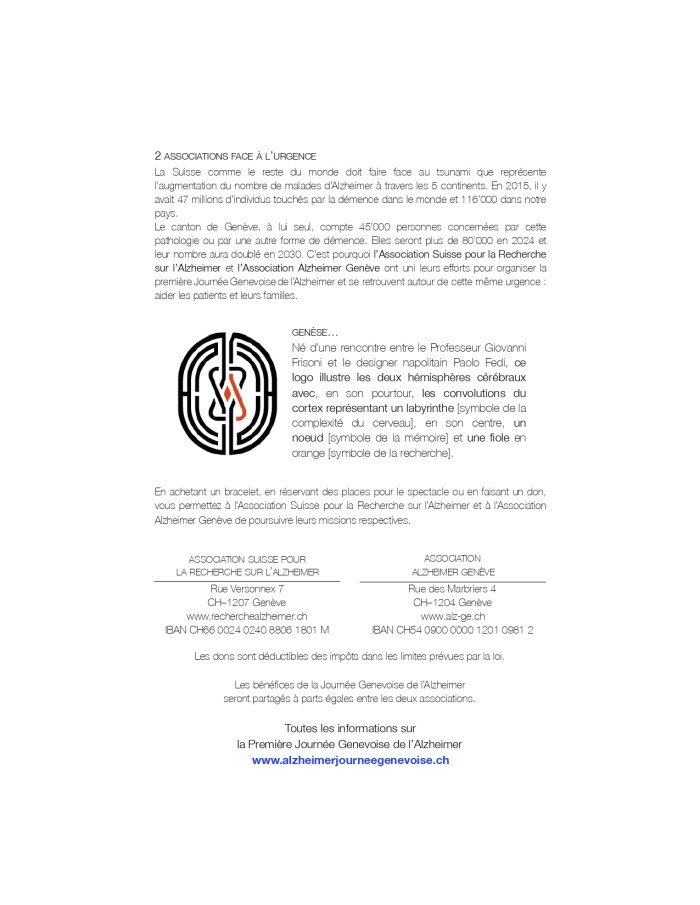 - 19h30 Spectacle spécialement joué à l’occasion de la Journée Genevoise de l’Alzheimer